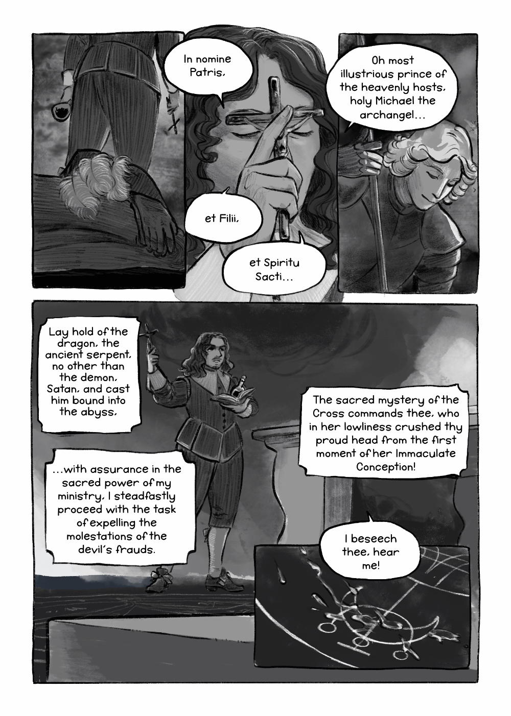 A fun romp, a historical fantasy, and a personally devastating faith-questioning adventure for this particular priest. 34 pages of comics, a few pages of development extras!